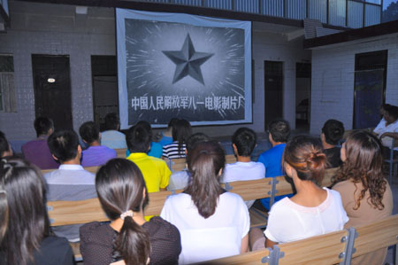 為紀(jì)念中國共產(chǎn)黨成立91周年,加強(qiáng)廣大員工的思想政治教育,激勵(lì)其繼承黨的優(yōu)良傳統(tǒng),大力發(fā)揚(yáng)求真務(wù)實(shí)的工作作風(fēng)和無私奉獻(xiàn)的敬業(yè)精神。在黃陵縣店頭鎮(zhèn)人民政府和文化站大力支持下,7月15日20時(shí),一場(chǎng)以“迎黨建、弘黨風(fēng)”為主題的紅色觀影活動(dòng)在廣通黃陵分公司建新、建莊礦員工之家隆重展開,除值班人員外,分公司黨員、預(yù)備黨員、各部門員工共 40多人與當(dāng)?shù)卮迕窆餐瑓⒓恿诉@次觀影活動(dòng)。